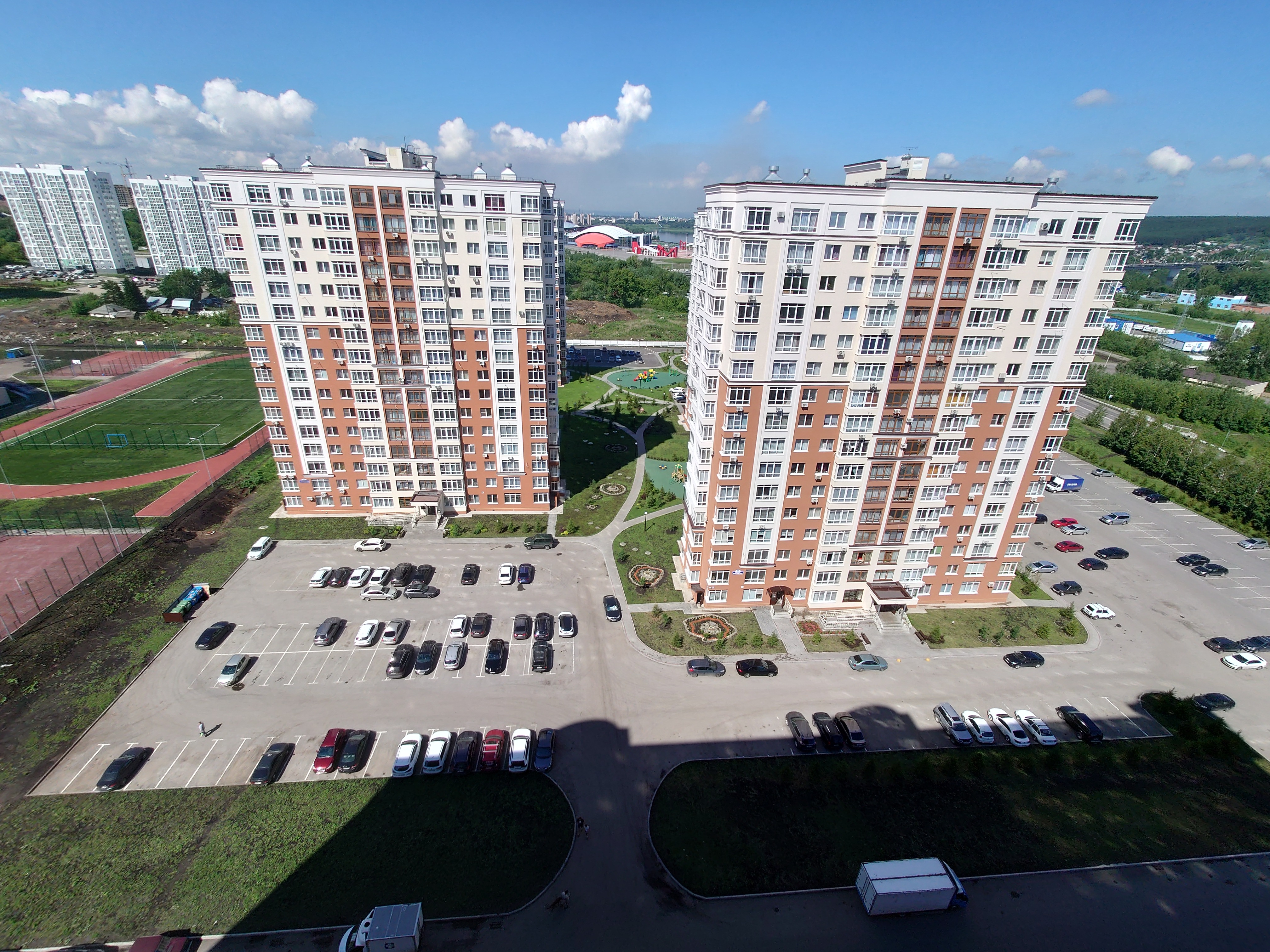 • В ЖК «Притомский» есть сквер с детскими и спортивными площадками. Во дворе подземный паркинг. Территорию просматривают камеры видеонаблюдение.